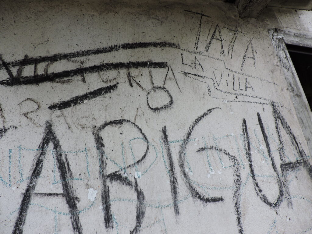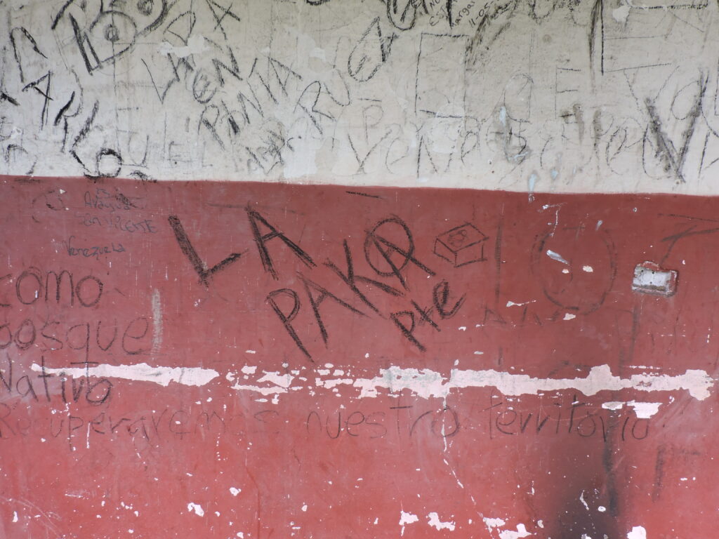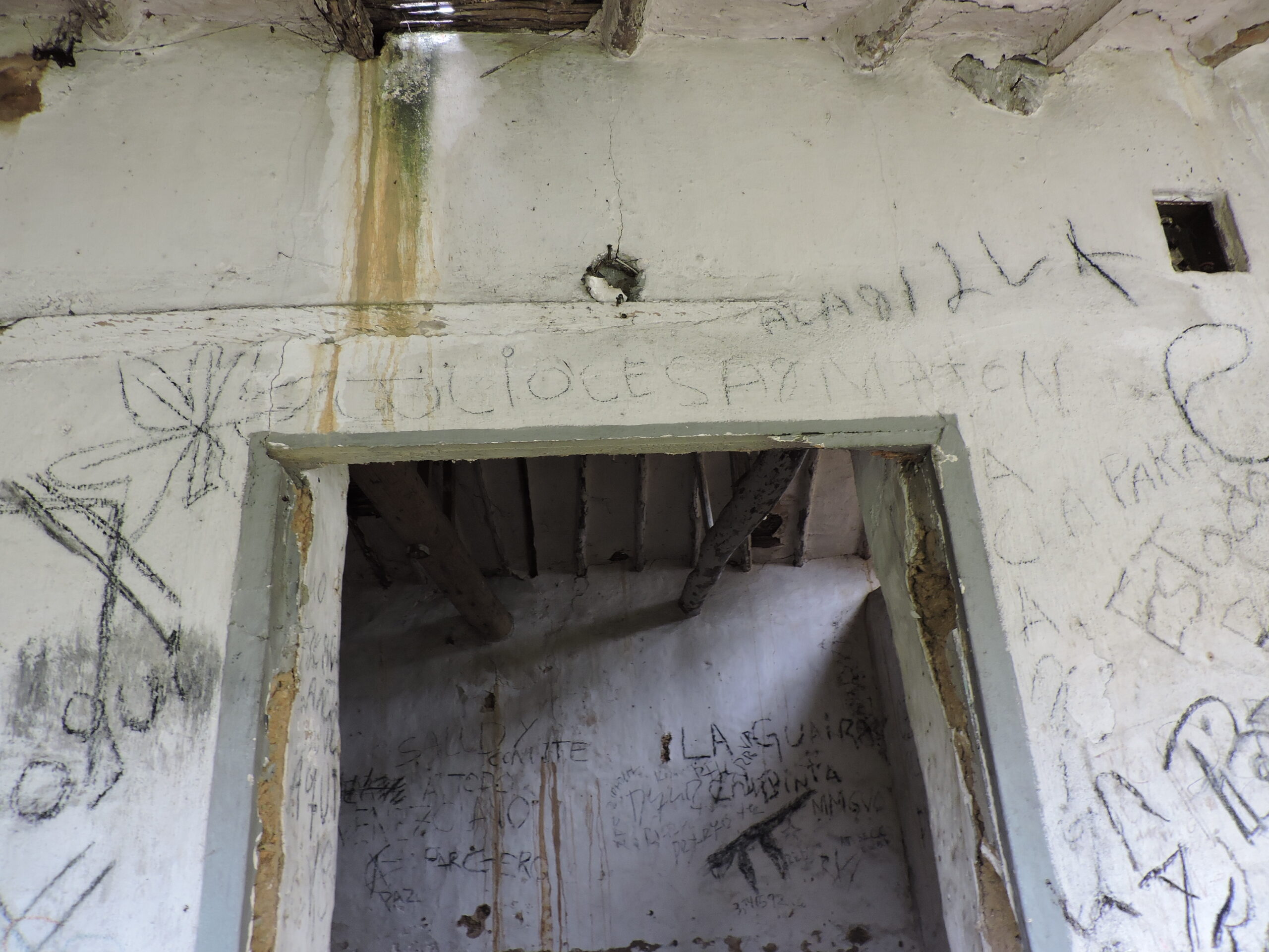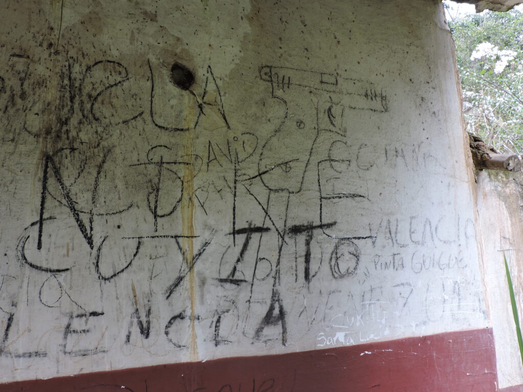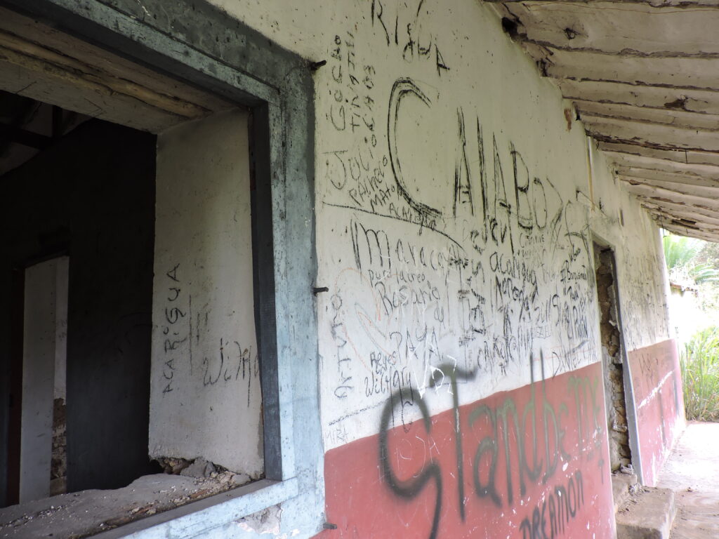 En las paredes principales de la casa —en la fachada y en lo que pudo ser una sala— se concentra la mayor cantidad de mensajes. Su densidad transforma el espacio y genera una atmósfera cargada de dramatismo, distinta a la observada en otros lugares de la carretera.
