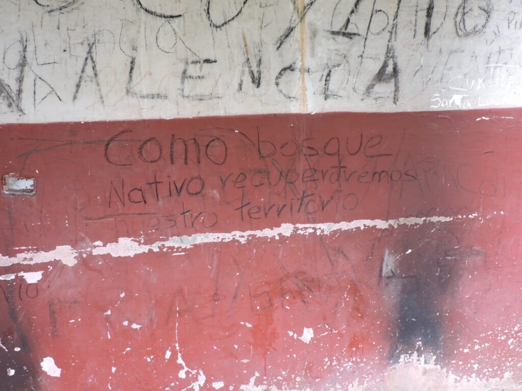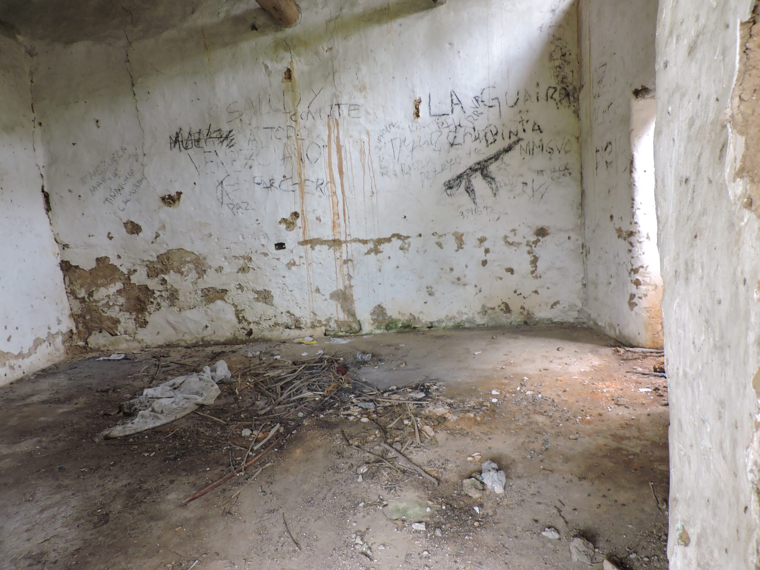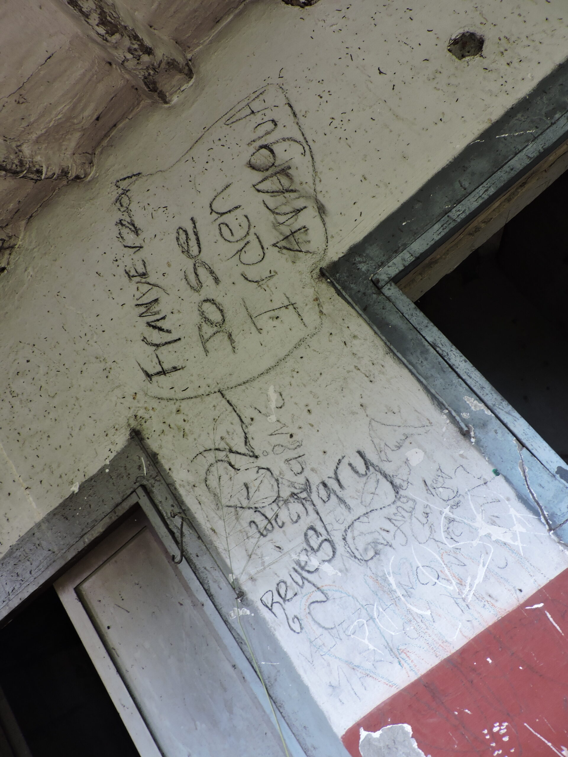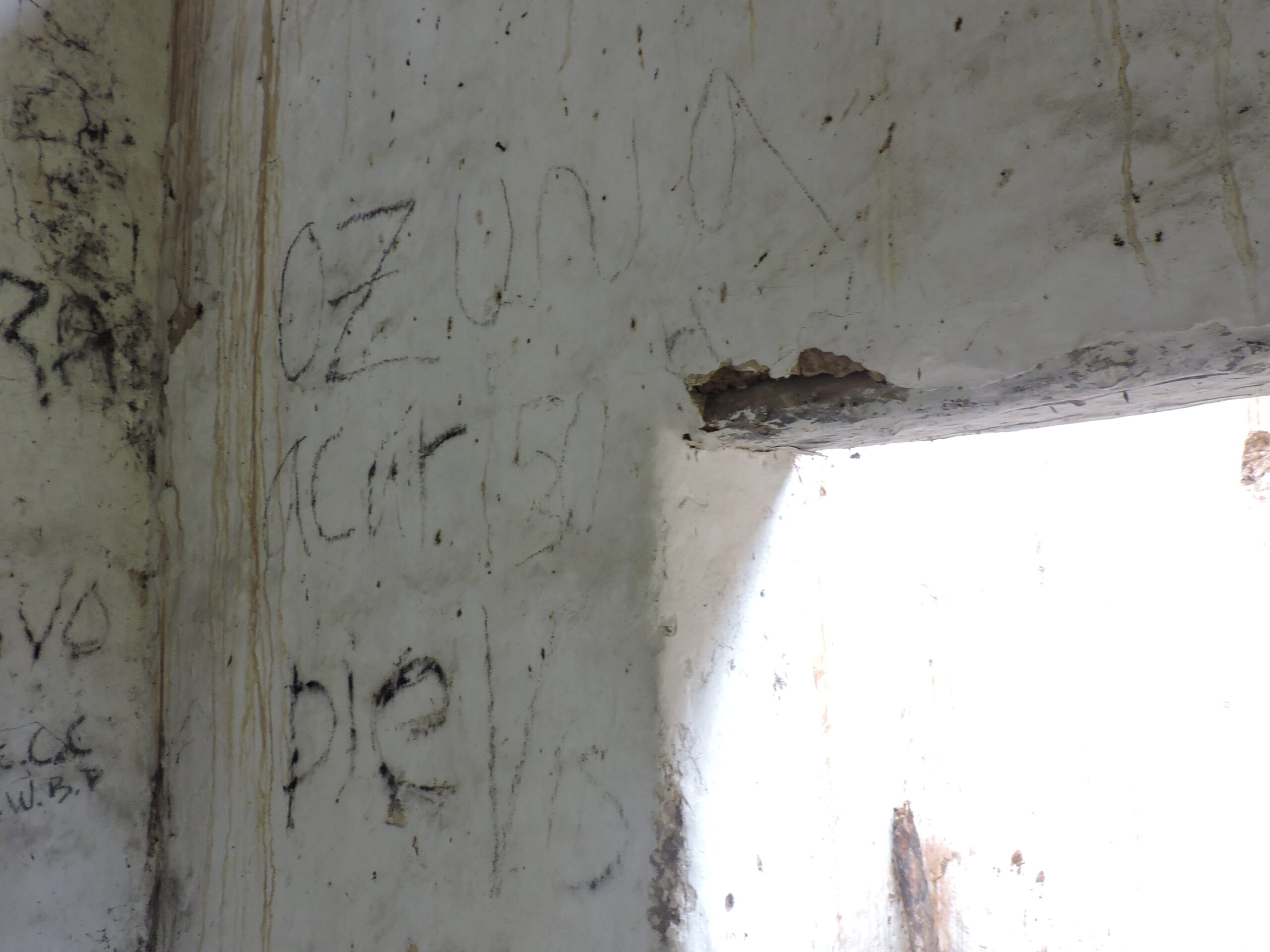 En las paredes principales de la casa —en la fachada y en lo que pudo ser una sala— se concentra la mayor cantidad de mensajes. Su densidad transforma el espacio y genera una atmósfera cargada de dramatismo, distinta a la observada en otros lugares de la carretera.