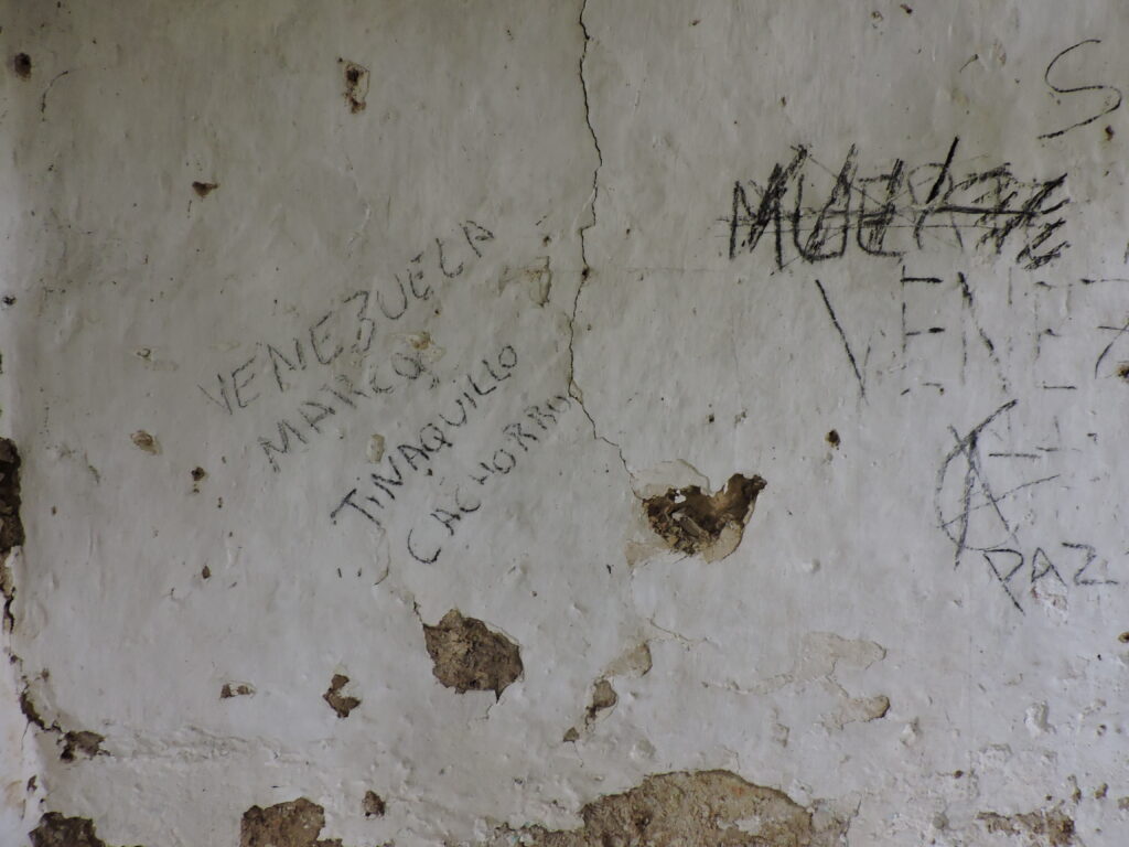 A la orilla de la carretera de Pescadero, en una antigua casa abandonada que ha servido de refugio a viajeros de a pie, se encontraron decenas de inscripciones: nombres, seudónimos, fechas y lugares de origen que mayormente evocan diferentes rincones de Venezuela. Estas marcas están ligadas al fenómeno social denominado éxodo venezolano, un desplazamiento de millones de personas que, en medio de la precariedad, recorrieron largas distancias a pie en busca de mejores condiciones de vida. La vivienda, hoy en ruinas, guarda en sus paredes un silencioso testimonio de esa experiencia colectiva y de una de las crisis migratorias más profundas de América Latina.